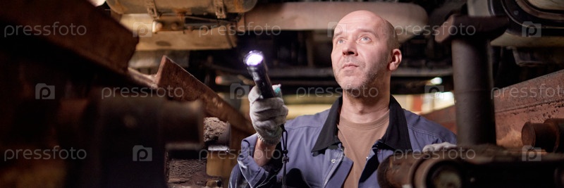 Инспекция машин под промышленным оборудованием