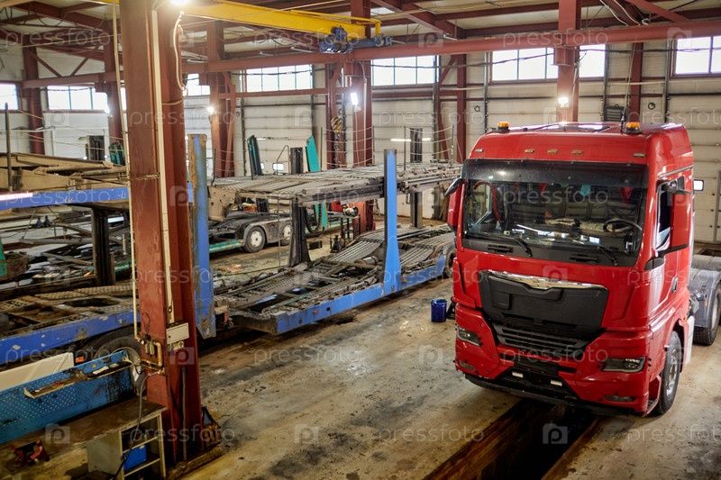 Грузовик, обслуживаемый в промышленной мастерской по ремонту