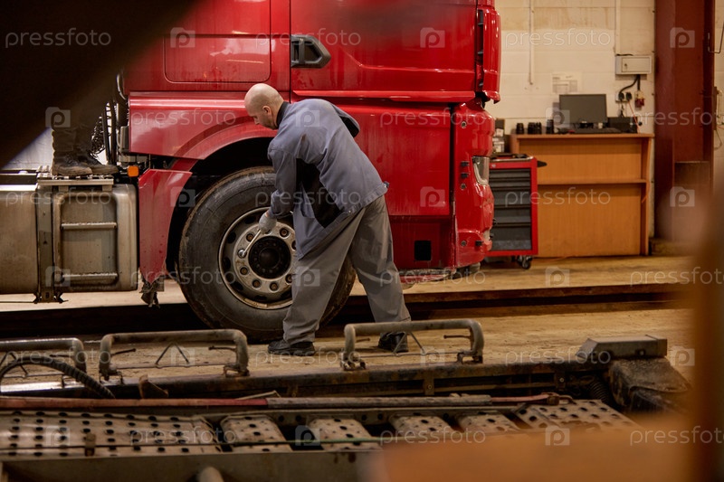 Ремонт колес грузовика в рабочей среде Гараж