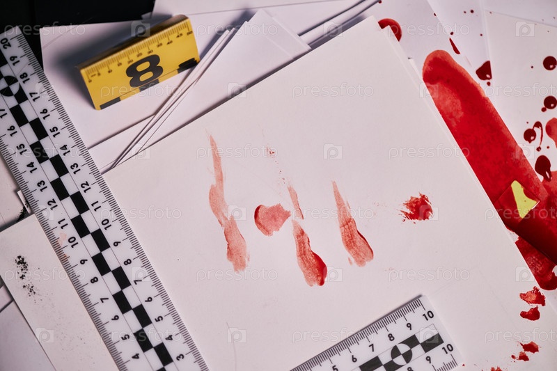 Анализ кровавых доказательств с использованием измерительных инструментов на столе