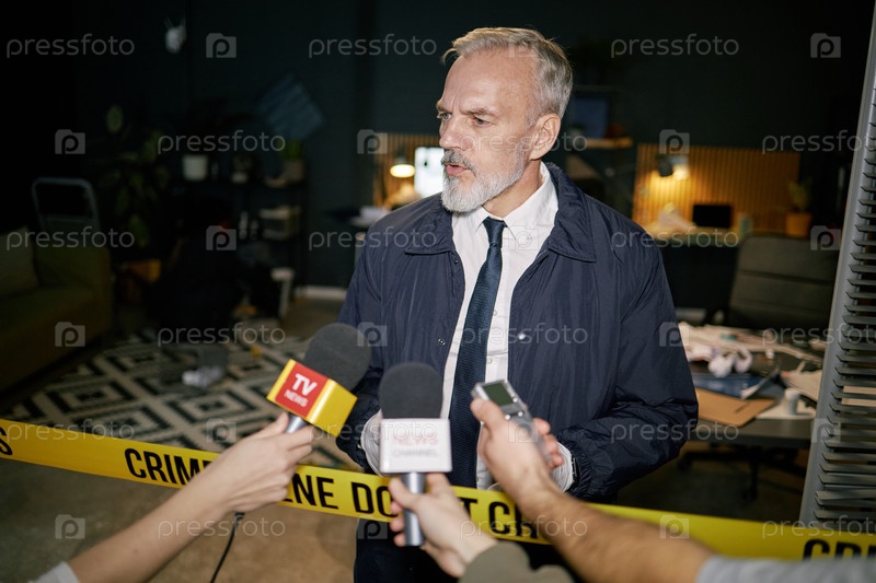 Интервью со старшим человеком в офисе Сцена преступления слегка выглядит боковой