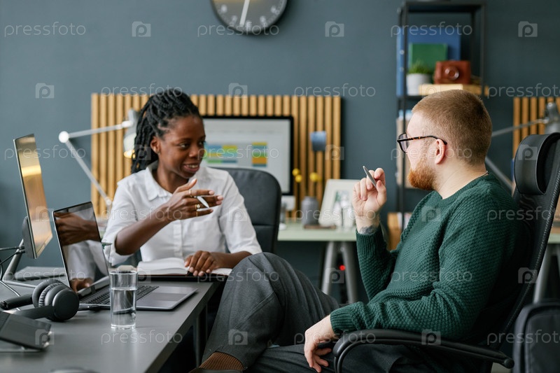 Обсуждение идей во время встречи команды в современном офисе
