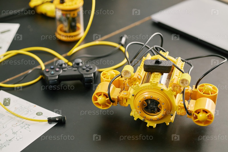 Строительство и программирование желтой робототехники на столе