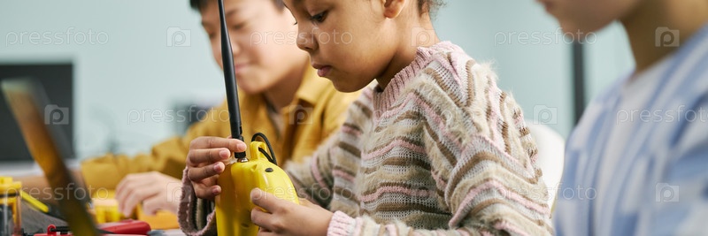 Header Image of Дети, взаимодействующие с образовательной робототехникой в классе