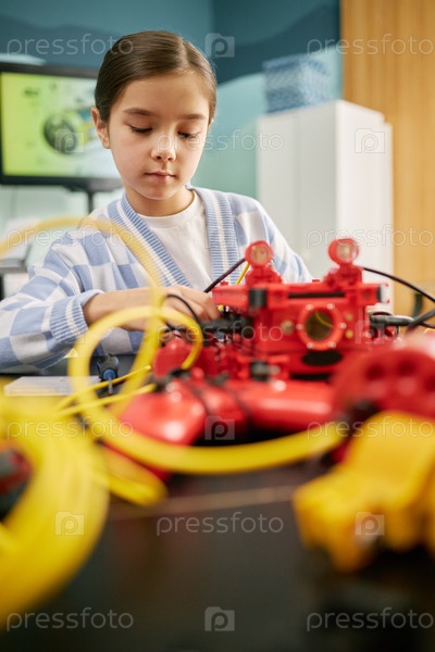 Молодая девушка участвует в проекте робототехники