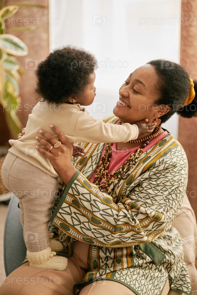 Любящая черная мать играет с ребенком дома