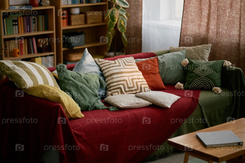 Уютная гостиная, украшенная яркими подушками