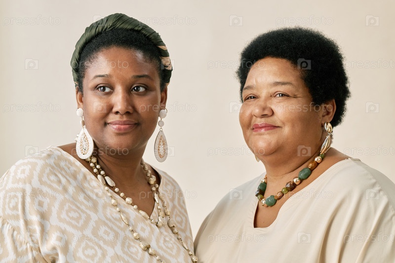 Портрет улыбающихся чернокожих женщин, позирующих вместе в студии