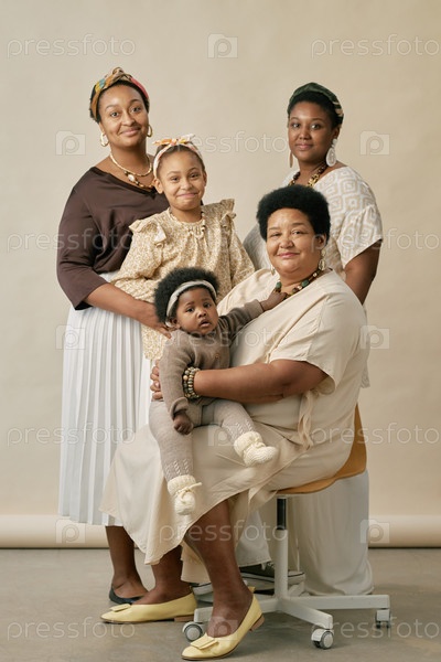 Портрет семьи с тремя поколениями, позирующими вместе