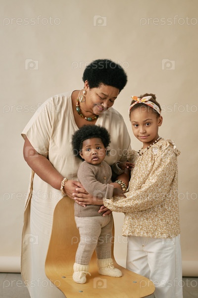Портрет афроамериканской семьи, позирующей перед камерой
