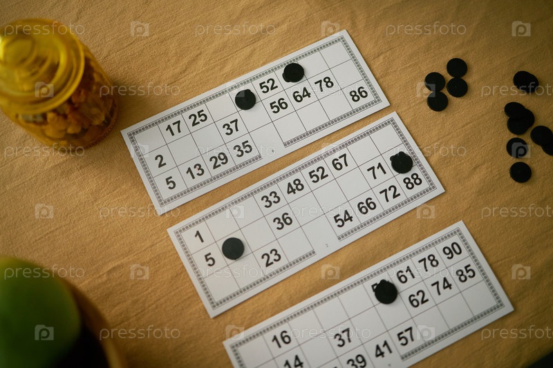 Играть в бинго с картами и черными маркерами на столе