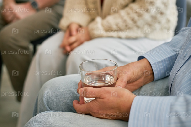 Старший мужчина, держащий стакан воды в группе поддержки