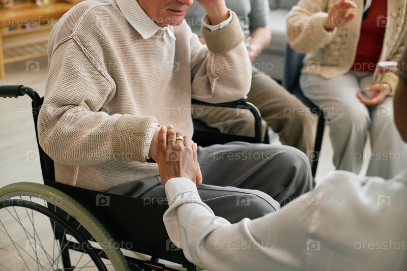 Вовлечение пожилого человека в инвалидном кресле во время групповой деятельности
