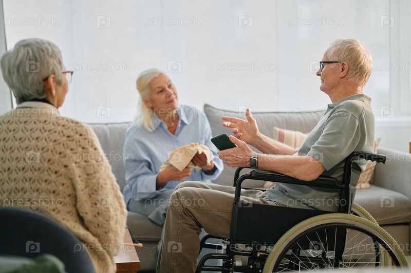Участие в разговоре с пожилыми людьми на инвалидной коляске