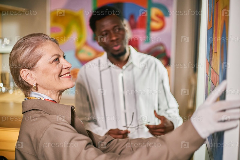 Обсуждение произведений искусства в галерее с энтузиазмом