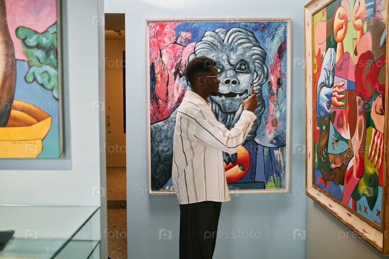 Наблюдение за произведениями искусства в музее Галерея Мужчина Установка
