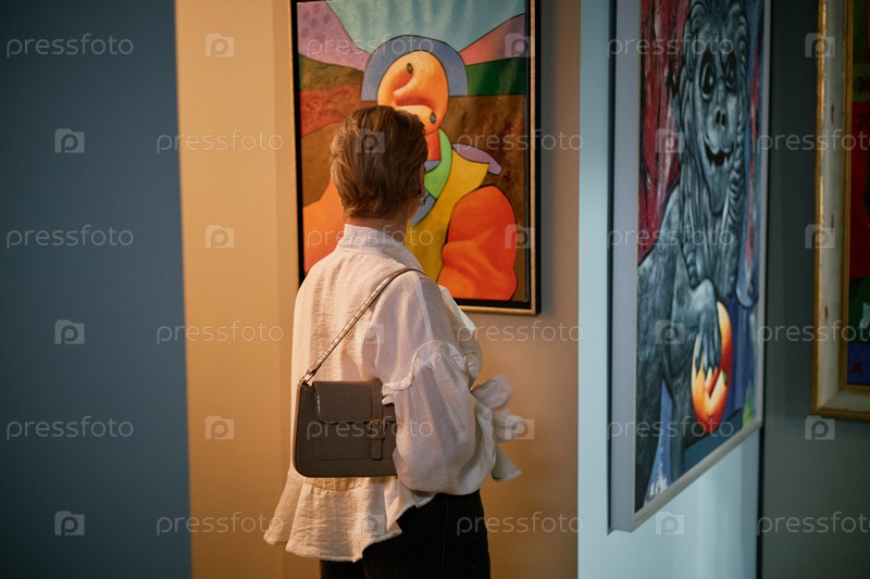 Наблюдение за произведениями искусства на выставке галереи современного искусства