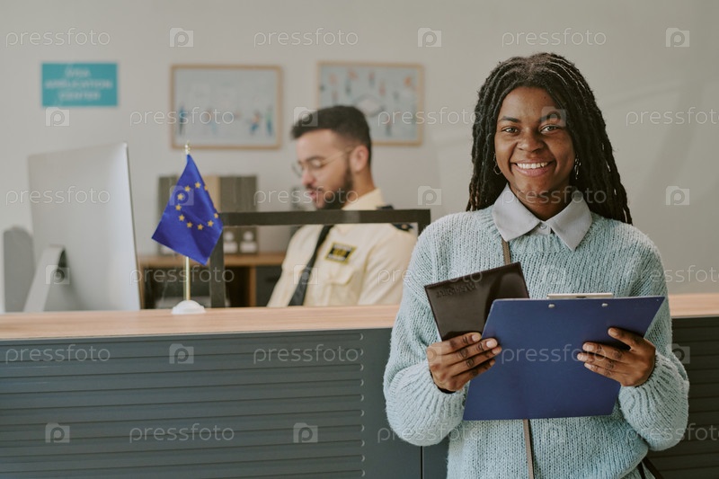 Улыбающаяся чернокожая женщина, держащая паспорт