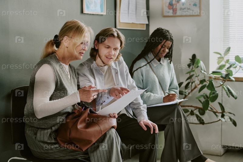 Люди, общающиеся в очереди в визовом центре