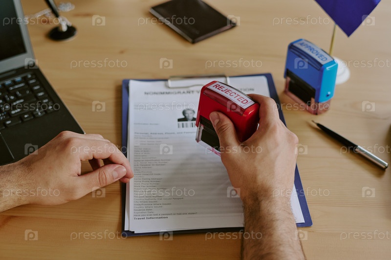 Запечатление документа с отклоненной печатью в офисной обстановке