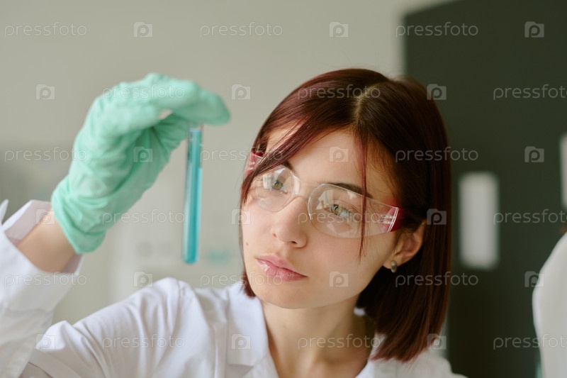 Студент, исследующий пробирку в лабораторной обстановке
