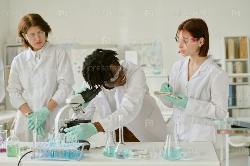Исследование образцов с помощью микроскопа в научной лаборатории