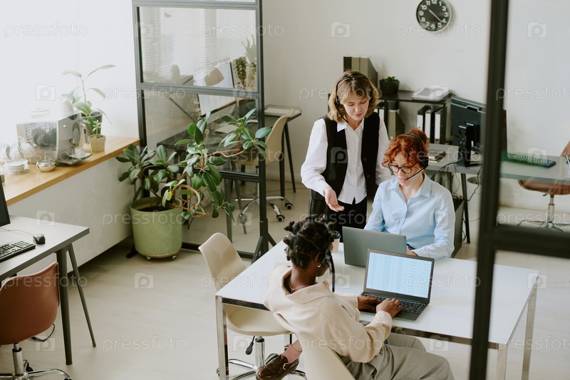 Работники в современной офисной обстановке