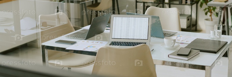 Офисное рабочее пространство с ноутбуками и современными документами