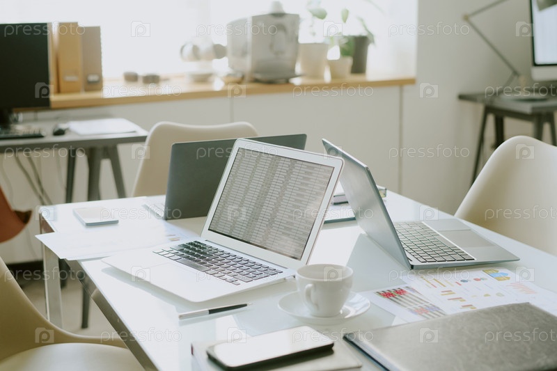 Рабочее место с ноутбуками на столе в современной офисной обстановке