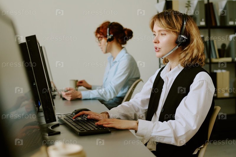 Предоставление поддержки клиентов с помощью гарнитуры на офисном столе