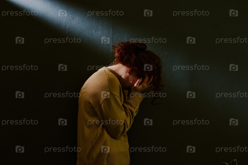 Человек, стоящий и чувствующий себя грустно в темной комнате