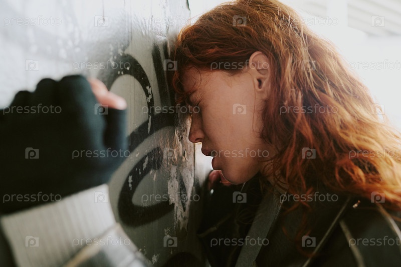 Женщина, опирающаяся на графитированную стену в созерцании