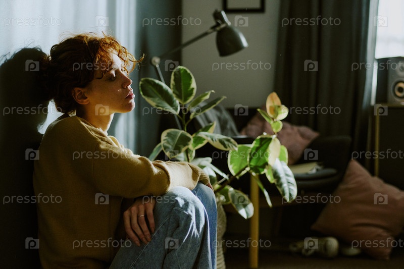 Женщина, опирающаяся на стену в спальне