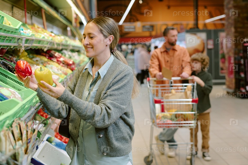 Выбор свежих перцев в проезжей части продуктового магазина