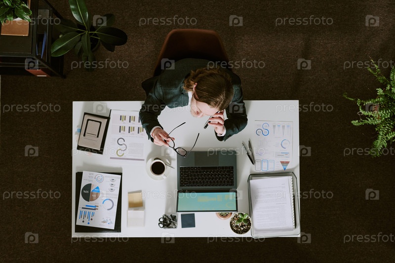 Бизнесмен, работающий на современном офисном столе
