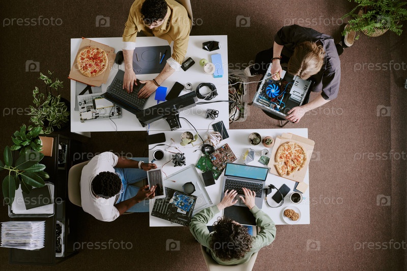 Совместная встреча с технологическими устройствами и пиццей