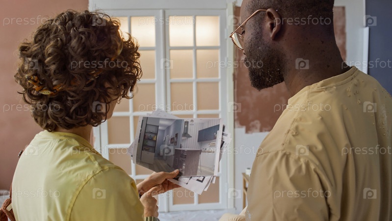 Обсуждение планов ремонта дома в современной гостиной
