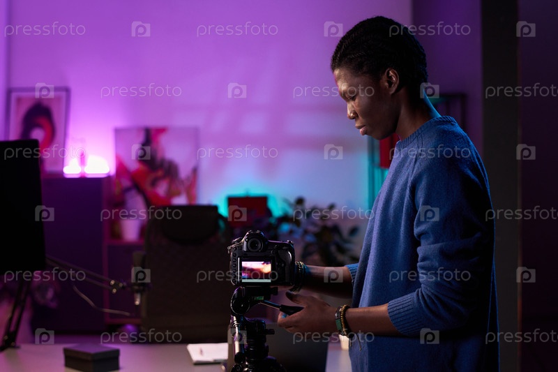 Фотограф, регулирующий камеру для профессиональной съемки