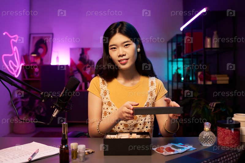 Портрет молодой азиатской женщины, представляющей продукты красоты
