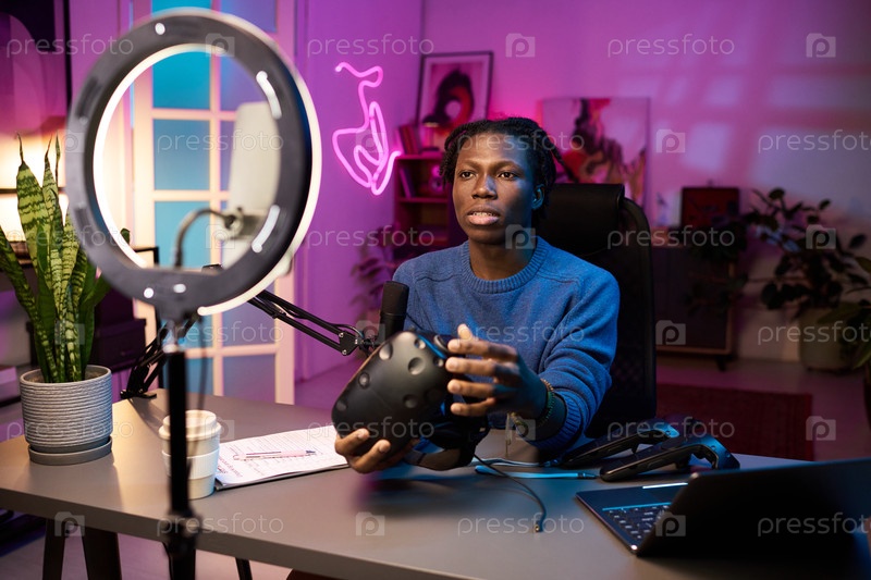 Влиятель, демонстрирующий технологию виртуальной реальности