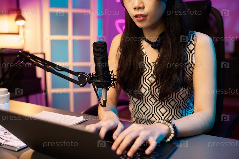 Работа за столом с современным звукозаписывающим оборудованием