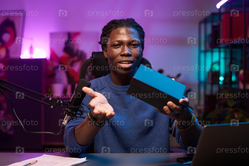 Портрет афроамериканца, держащего черный ящик в студии