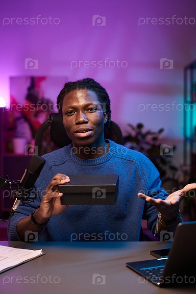Портрет мужчины, держащего чёрный ящик на онлайн-трансляции