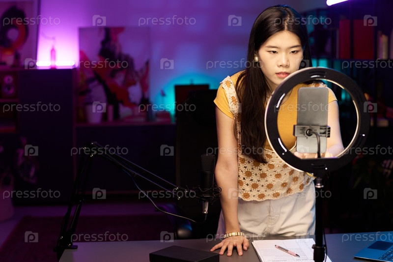 Портрет молодой женщины, создающей контент в социальных сетях