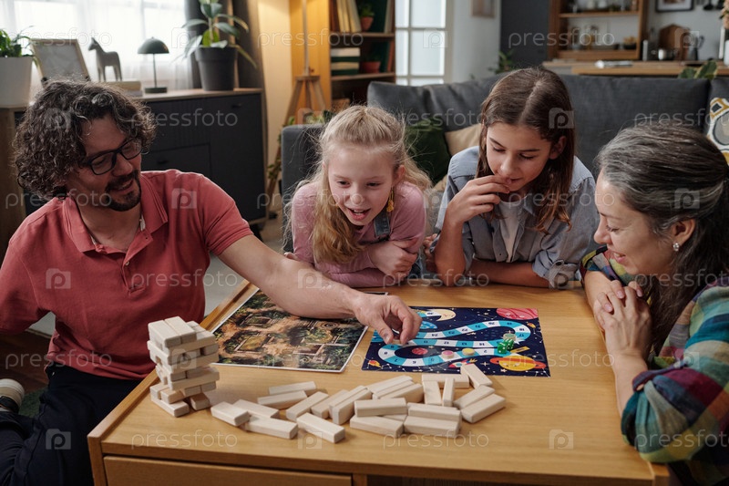 Семья занимается игрой на доске вместе