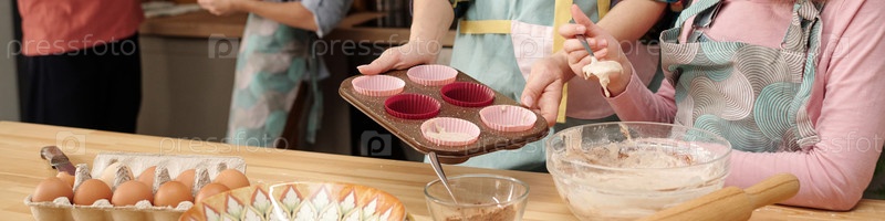 Печь кексы вместе в уютной кухонной обстановке