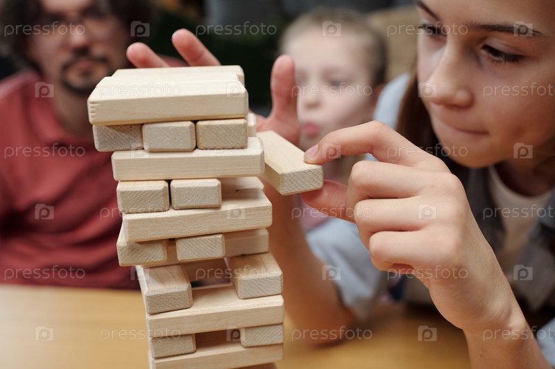 Играть в дженгу с сосредоточенной концентрацией дома