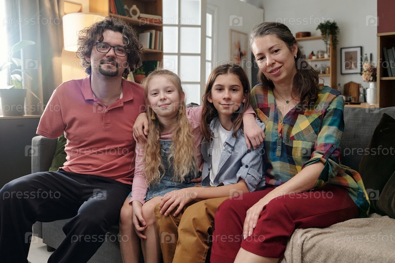 Семья отдыхает вместе на удобном домашнем диване