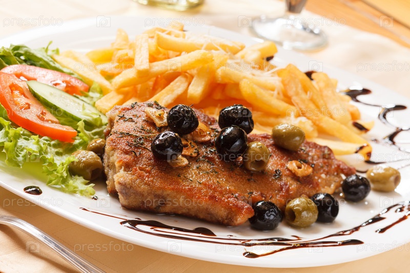 Стейк на гриле с картофелем фри