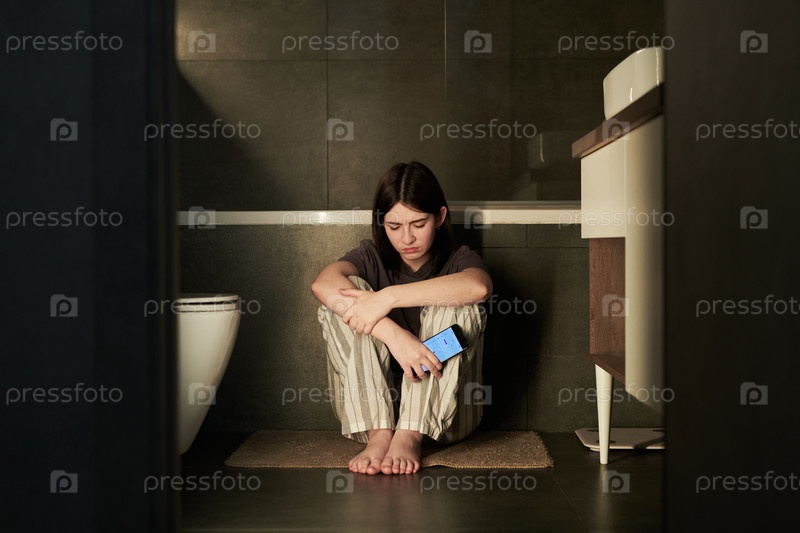 Сидя на полу ванной комнаты, размышляя о жизни со смартфоном